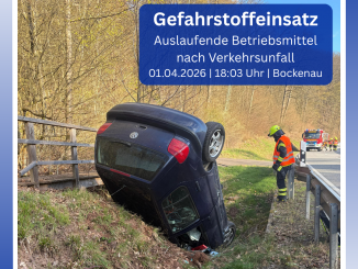 Am Mittwochabend wurde die Feuerwehreinheit Bockenau mit dem Stichwort „G1.02 – Auslaufende Betriebsmittel nach VU, Airbags ausgelöst, 2 Personen aus dem Fahrzeug, Auto auf dem […]