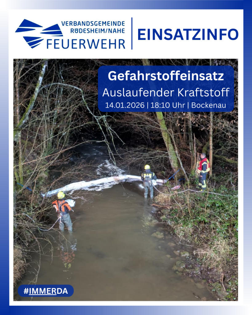 Datum: 31. Januar 2026 um 13:17 UhrAlarmierungsart: DME, SireneEinsatzart: Gefahrstoffeinsatz G1 > Gefahrstoffeinsatz G1.01Einsatzort: Duchroth, NaheweinstraßeEinsatzleiter: Wehrführer DuchrothEinheiten und Fahrzeuge: Feuerwehr Duchroth: FW Duchroth KTLF, FW […]