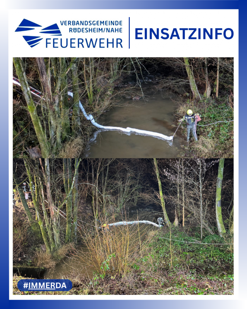 Bockenau: Feuerwehr errichtet Ölsperren im Ellerbach nach Dieselaustritt in Bockenau
