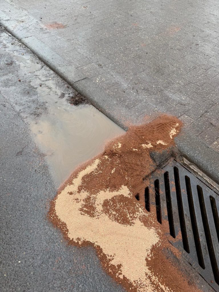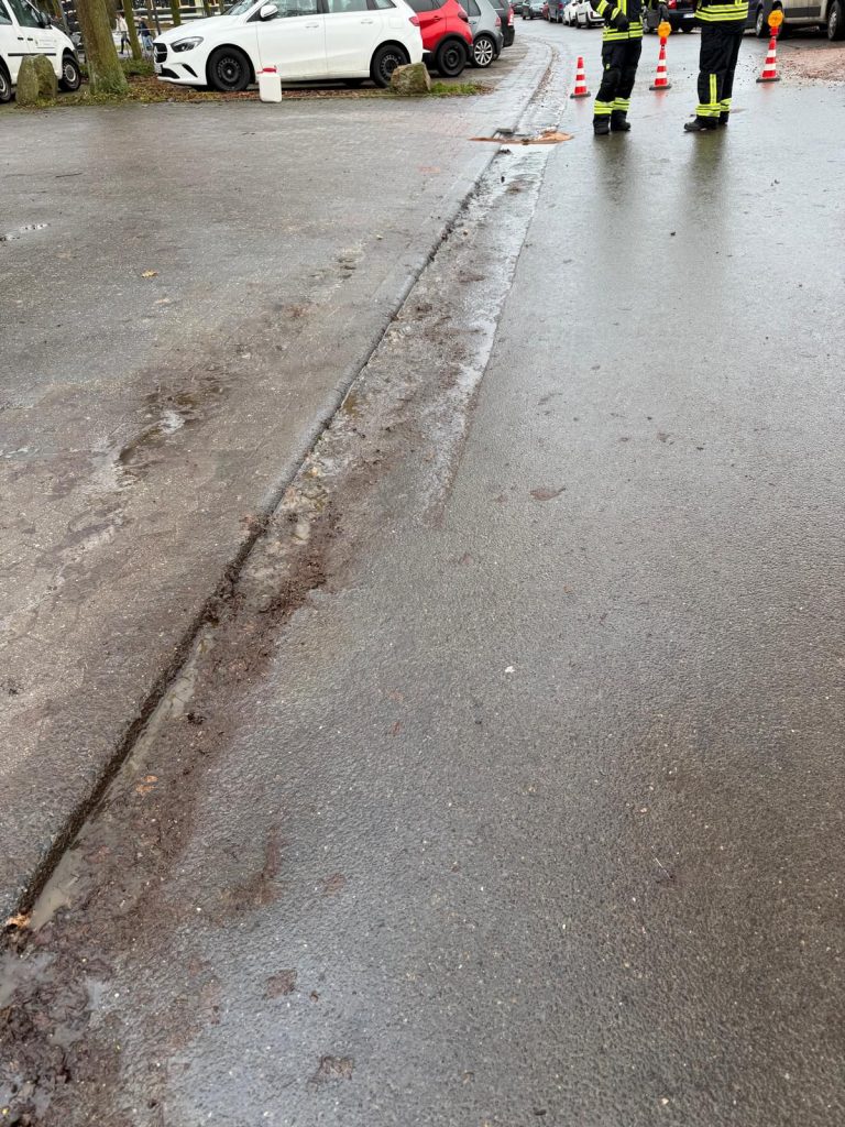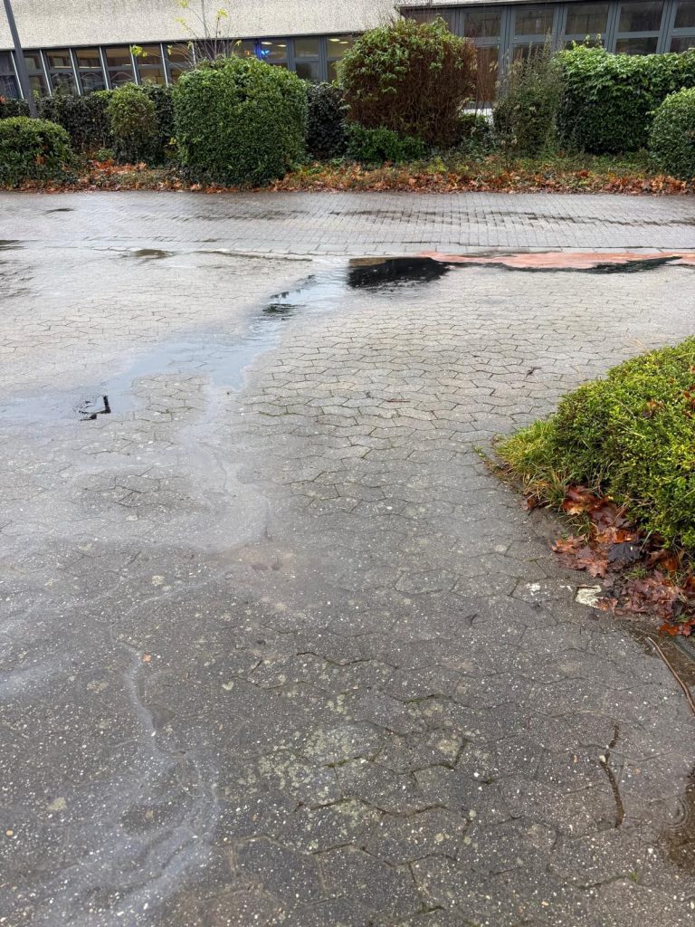 Kleine Ursache, große Wirkung: Beim Überfahren eines Steines auf dem Schulparkplatz der ADS Hargesheim riss sich der Fahrer eines VW Passat am Mittwochmittag auf die Ölwanne auf. Durch den Regen verteilte sich das Motoröl rasch auf der Parkplatzfläche und drohte in die Kanalisation zu laufen.