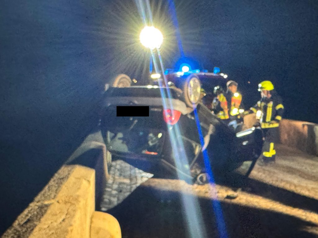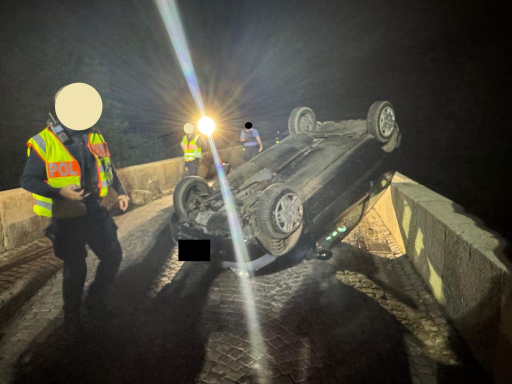 Eine 80-Jährige befuhr mit ihrem Renault Clio die Luitpoldbrücke in Richtung Oberhauen, als sie aus ungeklärten Gründen gegen eine Brückenbegrenzung prallte. Durch den Aufprall überschlug sich das Fahrzeug. Die Fahrerin konnte sich selbst aus dem Auto befreien und wurde von Ersthelfern und der Feuerwehr versorgt. Der ebenfalls alarmierte Rettungshubschrauber Christoph 77 landete unweit der Unfallstelle, musste aber nicht eingesetzt werden. Die Feuerwehren aus Oberhausen und Duchroth leuchteten die Unfallstelle aus, die Einsatzkräfte aus Niederhausen und Waldböckelheim mussten nicht eingreifen.
