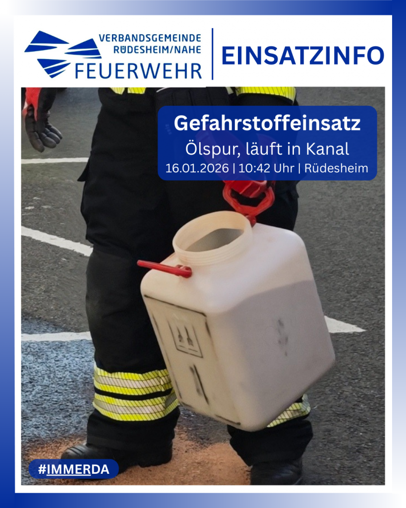 Datum: 31. Januar 2026 um 13:17 UhrAlarmierungsart: DME, SireneEinsatzart: Gefahrstoffeinsatz G1 > Gefahrstoffeinsatz G1.01Einsatzort: Duchroth, NaheweinstraßeEinsatzleiter: Wehrführer DuchrothEinheiten und Fahrzeuge: Feuerwehr Duchroth: FW Duchroth KTLF, FW […]