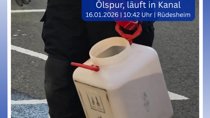 Zu einer Ölspur mit dem Zusatz „Öl läuft in Kanal“ rückte die Feuerwehreinheit Rüdesheim am Freitagvormittag in die Kurt-Schumacher-Straße aus.