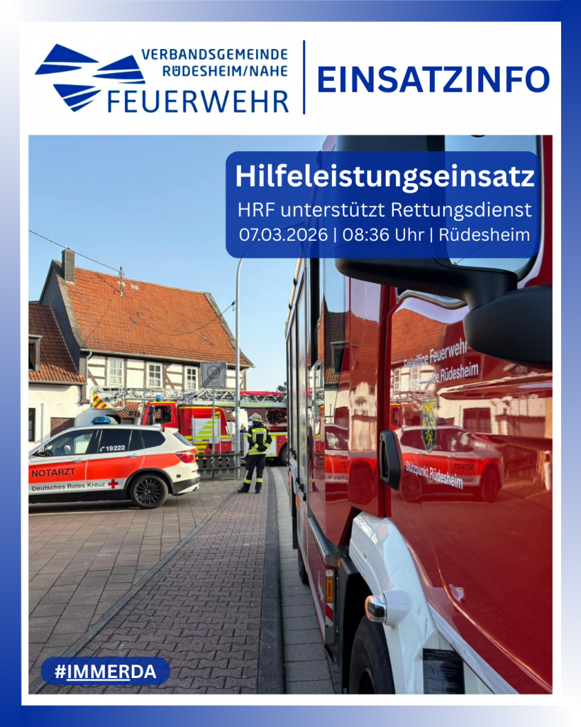 „HRF hilft Rettungsdienst“ war als Alarmdepeche auf den Displays der digitalen Meldeempfänger am Samstagmorgen zu lesen, als die Feuerwehreinheit Rüdesheim und die Drehleiter des Bad Kreuznacher Löschbezirks Nord alarmiert wurden.