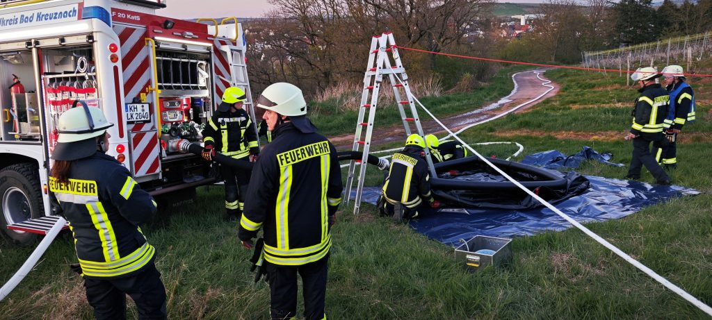 Am vergangenen Dienstag führten die Feuerwehren Rüdesheim, Hargesheim-Roxheim und Niederhausen eine gemeinsame Ausbildung durch, die sich auf die Vegetationsbrandbekämpfung konzentrierte. Rouven Ginz, Niklas Köller und Tim Pleins hatten folgendes Übungsszenario vorbereitet: Angenommene Lage war ein Waldbrand auf dem Kesselberg in Rüdesheim. Die Hauptziele der Übung waren wie folgt definiert: Effektive Brandbekämpfung, Verhinderung der weiteren Ausbreitung des Vegetationsbrandes und Aufbau einer stabilen Wasserversorgung über lange Wegstrecke.