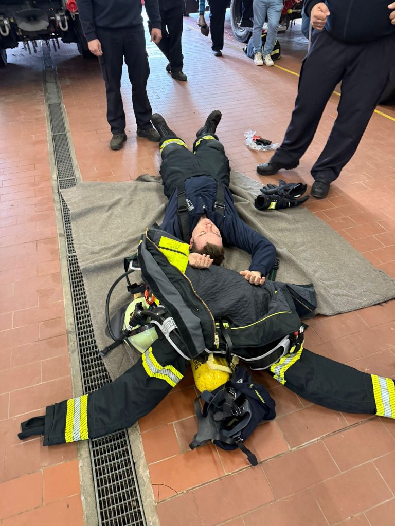 Tipps zur Anwendung der Wärmebildkamera im Innenangriff gehörten ebenso zu den Lerninhalten wie die Rettung und notfallmäßige Entkleidung eines Atemschutzgeräteträgers, der bei seinem Einsatz im Innenangriff verletzt wurde.